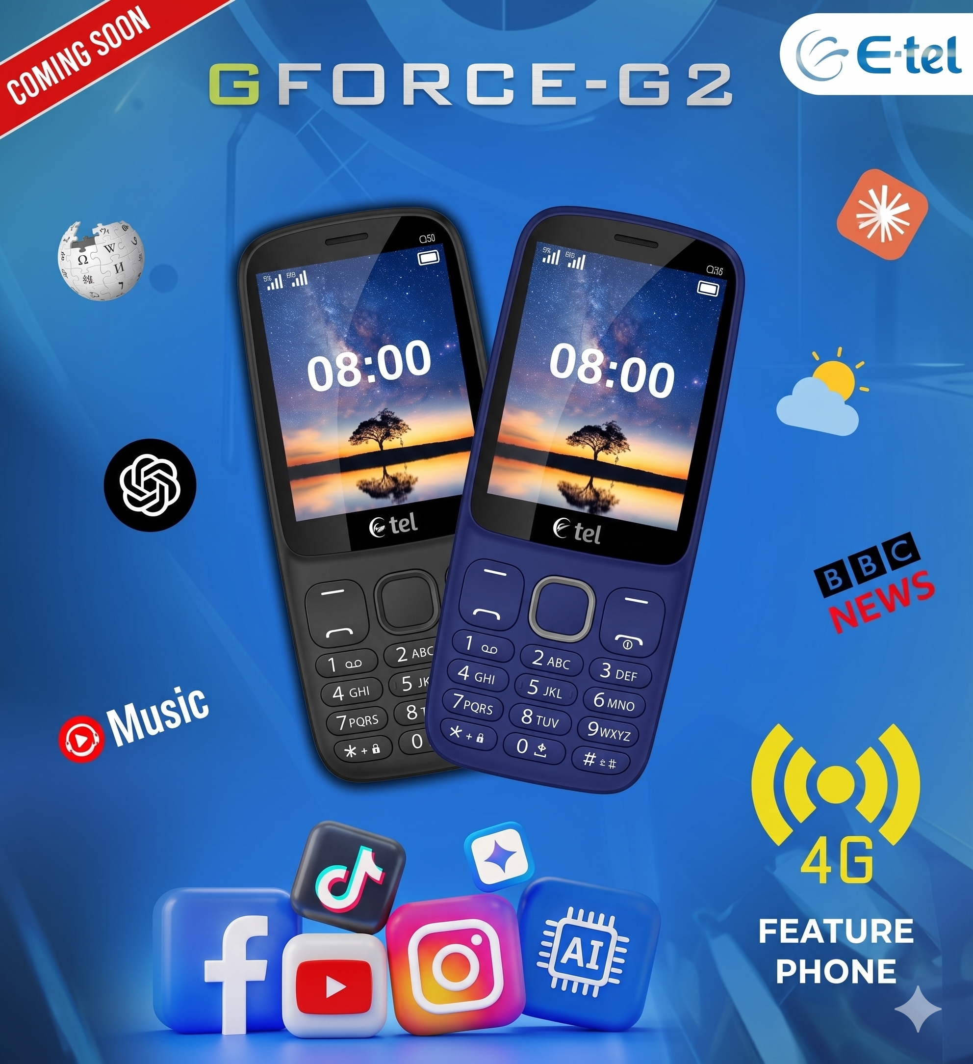 4G-enabled feature phone (keypad phone) released in Sri Lanka by Brantel Lanka. It is designed for basic connectivity and entertainment, featuring AI capabilities, Facebook access, and YouTube viewing. The device is marketed as a low-budget, compact 4G, and smart feature phone.